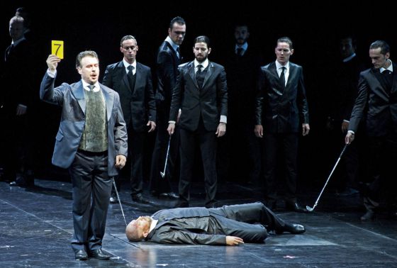 La producció, nova, era signada pel jove director Jan Philip Glober. La tesi del muntatge pot molt ben ser la d’aquelles estrofes d'El retaule del flautista de Jordi Teixidor: “El negoci no té cor/ el negoci no té entranyes./ Ara manen les finances,/ ara mana qui té l’or...”. Al programa de mà, l’article de Byung-Chul Han ens diu que “la preocupació per maximitzar la producció és inherent a l’inconscient social”, cosa que es dóna, efectivament, en el context de la societat de l’assoliment (per oposició a la societat disciplinària de Foucault). Això, és clar, es tradueix en “les malalties psíquiques de la societat de l’assoliment”, que sembla bandejar l’amor per culpa de la despersonalització a la que sotmetem l’individu. Molt bé, però... què redimonis té a veure això amb Der Fliegende Holländer? Lluny del despropòsit del demencial Tannhäuser que també es representa a Bayreuth, el muntatge de la quarta òpera de Wagner no irrita, però deixa més aviat indiferent, a banda que visualment –i a excepció del primer quadre- no és gens atractiu. Ni la descontextualització espai-temps; ni el concepte dramatúrgic ni la direcció actoral no semblen merèixer una especial atenció, cosa que converteix l’espectacle en una cosa anodina, de “passa-que-t’he-vist”. Una llàstima.